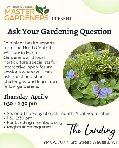 Connect with plant experts from the North Central Wisconsin Master Gardeners and local horticulturists! Join these interactive sessions on the 2nd Thursday of each month, April–September, 1:30 - 2:30 pm.